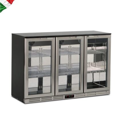Το τριπλό Back Bar της Bartscher , με χωρητικότητα 270 λίτρα και ισχύ 220Watt , ψύχει τα ποτά και τα αναψυκτικά σας με αξιοπιστία. Διαθέτει ηλεκτρονικό θερμόμετρο αλλά και θερμοστάτη δίνοντας έτσι την δυνατότητα για ακριβή ρύθμιση της επιθυμητής θερμοκρασίας. Οι τρεις συρόμενες πόρτες του διαθέτουν διπλό τζάμι και κλειδαριά ενώ ο εσωτερικός φωτισμός του βοηθά στην καλύτερη δυνατή παρουσίαση των προϊόντων προς τον καταναλωτή.