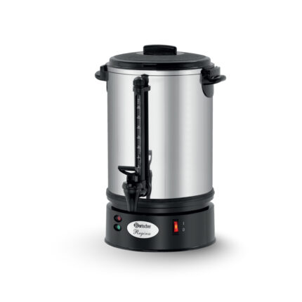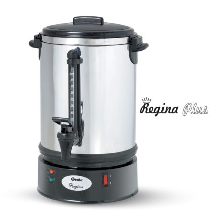 Percolator Regina Plus 40T (6,8Lt) 1,2kW, Bartscher Γερμανίας. Το Percolator Regina Plus 40 ετοιμάζει έως και 6,8 λίτρα καφέ φίλτρου σε 45 λεπτά. Η μηχανή αυτή του καφέ θα σας πείσει με χαρακτηριστικά όπως η ένδειξη καθαρισμού από άλατα, η ένδειξη στάθμης πλήρωσης και η λειτουργία διατήρησης θερμότητας με βελτιστοποιημένο θερμαντικό κοίλωμα από ανοξείδωτο χάλυβα.