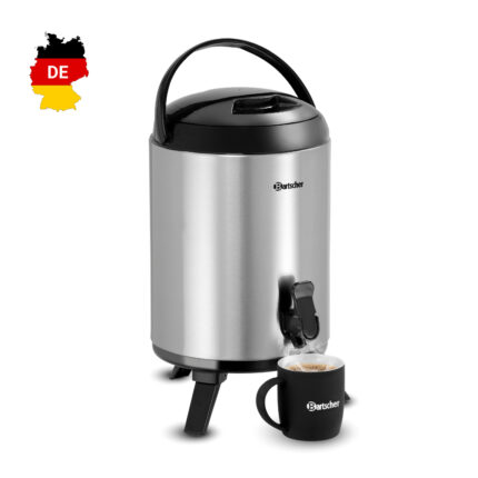 Διανομέας ροφημάτων 8 lt με διπλά τοιχώματα (για ζεστά ή κρύα ροφήματα), Bartscher Γερμανίας. Χωρητικότητα 8 λίτρα, μόνωση κενού με διπλό τοίχωμα, εύκολα αφαιρούμενος συλλέκτης υγρών. Ο διανομέας ροφημάτων στην έκδοση ανοξείδωτου χάλυβα θα σας πείσει με την ιδιαίτερα χαμηλή απώλεια θερμοκρασίας και αφήνει πάντα έναν καθαρό μπουφέ.