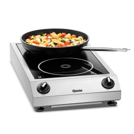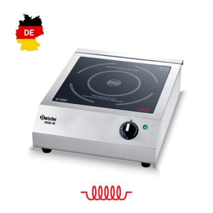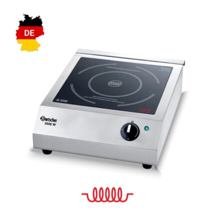 Επαγωγική (induction) ηλεκτρονική εστία ΙΚ 35TCKTF, Bartscher Γερμανίας. Φορητό μαγείρεμα με εξοικονόμηση χώρου, αλλά και με υψηλά πρότυπα – Χάρη στον αισθητήρα θερμοκρασίας στο εσωτερικό, με την ισχυρή επαγωγική εστία των 3500 Watt μπορείτε να ετοιμάσετε με ακρίβεια φαγητά όπως μπριζόλες. Σε συνδυασμό με την ακριβή ρύθμιση απόδοσης, θερμοκρασίας και χρόνου, κάθε πιάτο πετυχαίνει.