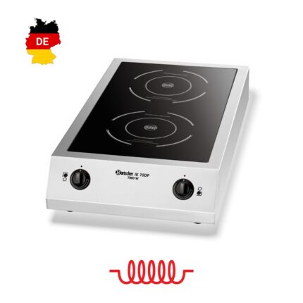 Επαγωγική (induction) αναλογική εστία ΙΚ 70DP, Bartscher Γερμανίας Είτε σε σιγανή είτε σε δυνατή φωτιά – Με την ισχύ των 7000 Watt μπορείτε να προετοιμάσετε τέλεια κάθε φαγητό. Χάρη στην ενεργοποίηση ισχύος μπορεί να ρυθμιστεί η μπροστινή από τις δύο εστίες που βρίσκονται η μία πίσω από την άλλη σε έως και 5000 Watt.