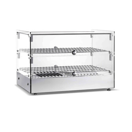 Επαγγελματική θερμαινόμενη βιτρίνα VHW350-Galore. Η VHW350 έχει ανοξείδωτο σώμα και τρία ράφια προβολής. Διαστάσεις 350x450x520mm και ισχύ 800watt.