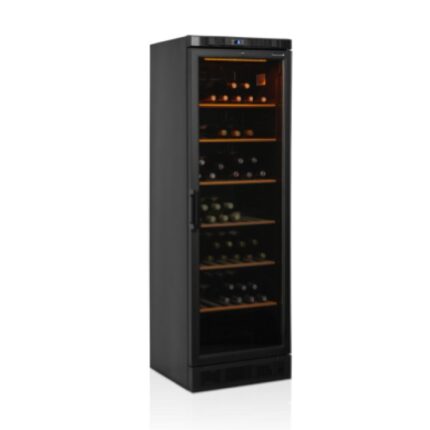 Bιτρίνα κρασιών, μονή στενή (Slim) , χωρητικότητας 113 lt, Bartscher Γερμανίας. Χάρη στον μοντέρνο σχεδιασμό της και τις μικρές της διαστάσεις (396x580x1030mm) αυτή η βιτρίνα κρασιών της Bartscher αποτελεί την ιδανική λύση για χρήση σε εστιατόρια- μπαρ αλλά και γενικότερα σε καταστήματα εστίασης. Οι δύο ξεχωρσιτά ρυθμιζόμενες ζώνες θερμοκρασίας , καθώς και η πόρτα με διπλό τζάμι και φίλτρο UV διασφαλίζουν την ιδανική συντήρηση αλλά και προβολή κόκκινων & λευκών κρασιών.