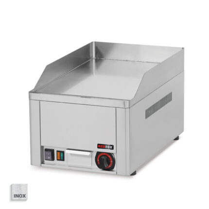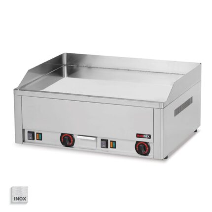 Διαστάσεις 660x540x220(h)mm Θερμοκρασία 50 – 300οC ρυθμιζόμενη χωριστά Ισχύς 6 KWatt, 400V / 50Hz Eπιφάνεια ψήσεως 650x480mm Βάρος 40,6 kg Κωδικός προϊόντος 101 001 000 Επιφάνεια ψήσεως αποτελούμενη από ειδικό κράμα μετάλλου πάχους 10mm Κατασκευή Inox Σπάτουλα καθαρισμού