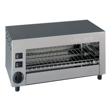 Διαστάσεις 350x410x390(h)mm Ισχύς 2,1 ΚWatt, 220-240V / 50-60Hz Μήκος αλυσίδας 25 cm Χωρητικότητα αλυσίδας 2 φέτες Παραγωγή/h 600 φέτες Μέγιστο ύψος φόρτωσης 5.2 cm Έξοδοι Μόνο εμπρός Κωδικός προϊόντος 18021 Ξεχωριστή ρύθμιση θερμοκρασίας πάνω & κάτω αντίστασης Αποσπώμενο & πλενόμενο συρτάρι Ρυθμιζόμενη ταχύτητα «αλυσίδας» Επιλογέας για ρύθμιση λειτουργίας πάνω-κάτω ή μόνο κάτω Ανοξείδωτες αντιστάσεις Ιδανική για πρωινούς μπουφέδες ξενοδοχείων