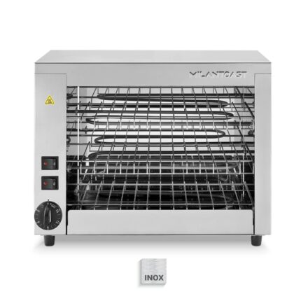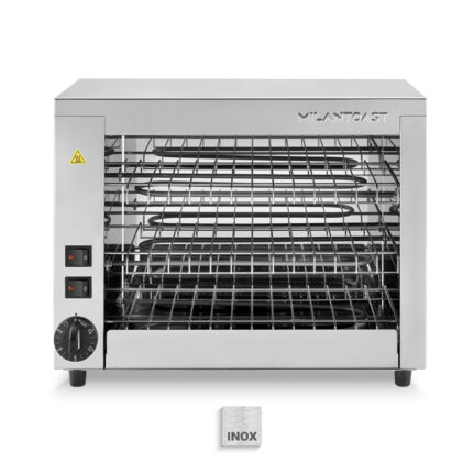 Διαστάσεις 430x230x230(h)mm Σχάρες 1 Λαβίδες 0 Ισχύς 1,85 ΚWatt, 230V / 50Hz Χωρητικότητα 3 φέτες Καθαρό άνοιγμα 8 cm Αντίσταση Quartz Χρονοδιακόπτης 15 min Κατασκευή Inox Συρτάρι για τα ψίχουλα ΠΡΟΑΙΡΕΤΙΚΟΣ ΕΞΟΠΛΙΣΜΟΣ Λαβίδα (Κωδικός προϊόντος 14260) – Αρχική Τιμή: 33€