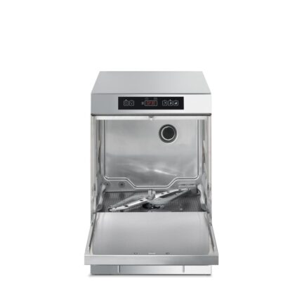 Διαστάσεις 565x610x1230(h)mm Άνοιγμα πόρτας 345 mm Καλάθι 500×500 mm Κύκλος πλύσης 2-3 min Ισχύς 6400 W / 400V / 3ph / 50-60Hz Αντίσταση κάδου 2500 Watt Αντίσταση Boiler 6000 Watt Αντλία πλύσης 0,4 KWatt Πλύση Πάνω κάτω Απόπλυση Πάνω-κάτω Με ηλεκτρικό δοσομετρητή στεγνωτικού & απορρυπαντικού Ανοξείδωτοι βραχίονες πάνω – κάτω Διπλά τοιχώματα Συμπεριλαμβάνονται: 1 καλάθι ποτηριών & 1 θήκη για μαχαιροπήρουνα & 2 καλάθια πιάτων