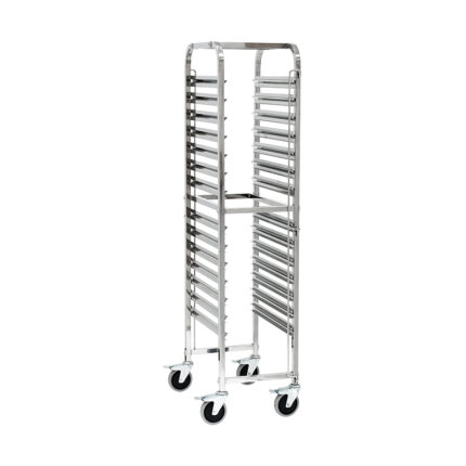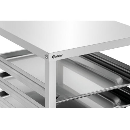 Καρότσι μεταφοράς ευρωπαικών προτύπων (18EN60400) , χωρητικότητας 18 λαμαρινών 600×400, Bartscher Γερμανίας. Το καρότσι μεταφοράς για αρτοποιεία και επαγγελματικές κουζίνες προσφέρει χώρο για 18 ταψιά σύμφωνα με πρότυπα αρτοποιείου με μέγεθος 600 x 400 mm. Με ασφάλεια δοχείων και από τις δύο πλευρές διασφαλίζεται γρήγορη και ασφαλής τακτοποίηση.