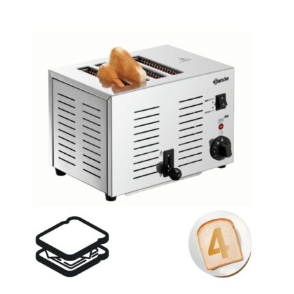 Διαστάσεις 470x410x470(h)mm Ισχύς 2,99 ΚWatt, 220-240V / 50-60Hz Μήκος αλυσίδας 37 cm Χωρητικότητα αλυσίδας 3 φέτες Παραγωγή/h 950+ φέτες Μέγιστο ύψος φόρτωσης 8.2 cm Έξοδοι Μόνο εμπρός Κωδικός προϊόντος 18036 Ξεχωριστή ρύθμιση θερμοκρασίας πάνω & κάτω αντίστασης Επιλογέας για ρύθμιση λειτουργίας πάνω-κάτω ή μόνο κάτω Ιδανική για πρωινούς μπουφέδες ξενοδοχείων
