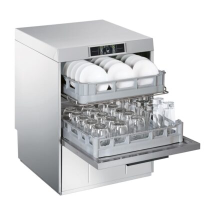 Διαστάσεις 600x600x1290(h)mm Άνοιγμα πόρτας 415 mm Καλάθι 500×500 mm Προγράμματα 70/80/90/120/130/190/250 sec Συνολική Ισχύς 4,7Kw/230V/50Hz | 6,7Kw/400V/3N/50Hz Αντίσταση κάδου 2000 Watt Αντίσταση Boiler 6000 Watt Αντλία πλύσης 0,7 KWatt Αντλία απόπλυσης Διπλά τοιχώματα Συμπεριλαμβάνονται: 1 καλάθι γενικής χρήσης & 1 καλάθι πιάτων & 1 μονή θήκη για μαχαιροπήρουνα.